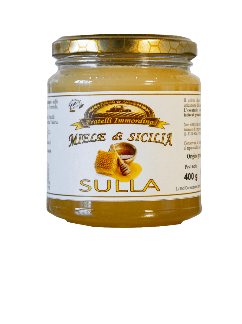 Il miele di sulla è un miele monofloreale tipico della Sicilia, dal sapore delicato, con note floreali, e persistente. Il miele di sulla è famoso per le numero proprietà benefiche, tra le quali l'azione disintossicante, ricostituente e lenitivo. La sulla appartiene alla famiglia delle leguminace, fortemente presente nelle colline siciliane, ed ha dei fiori rosso porpora. Fiorisce nel periodo compreso fra aprile e giugno e dopo il taglio viene anche utilizzata come foraggio per gli animali. Colore: giallo oro. Proprietà: disintossicante per il fegato e tonificante naturale. Sapore: delicato.